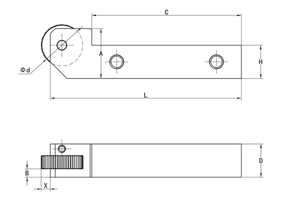 | 工具型號 | 安裝方向 | 加工范圍 | 適配滾花輪尺寸 | 刀桿尺寸 | X | |||||