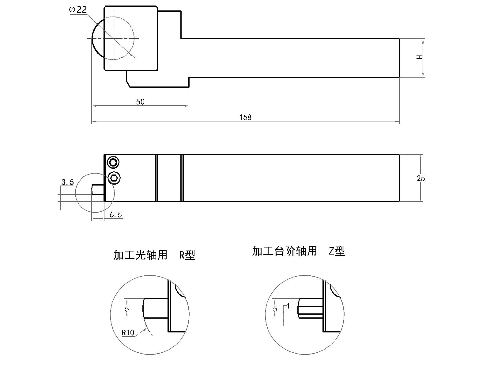 本工具適合Φ5以上的光軸光桿外圓,工具的通用性強(qiáng),使用壽命長(zhǎng),加工方便。刀具有正,反兩種結(jié)構(gòu),可根據(jù)滾壓工件直徑的大小選擇合適的滾輪直徑,可加工出最佳的鏡面效果。